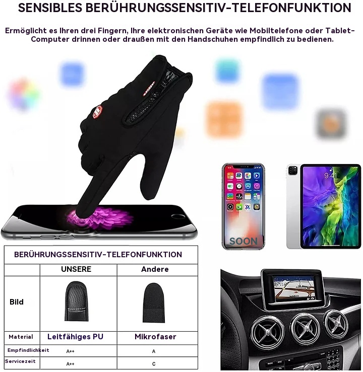📱 Dank des leitfähigen Materials lässt sich Ihr Smartphone problemlos bedienen, ohne dass Sie die Handschuhe ausziehen müssen.