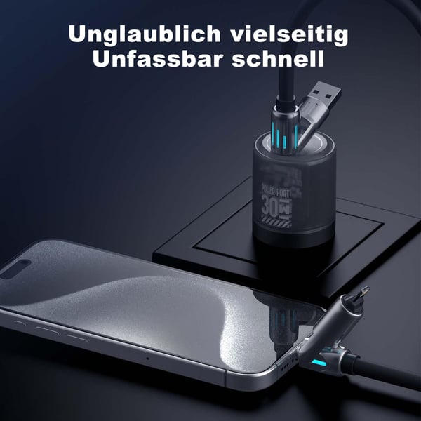- 4-in-1-Design: Dieses USB-C-Kabel hat 4 Stecker: USB A, Lightning und doppelten Typ C.
