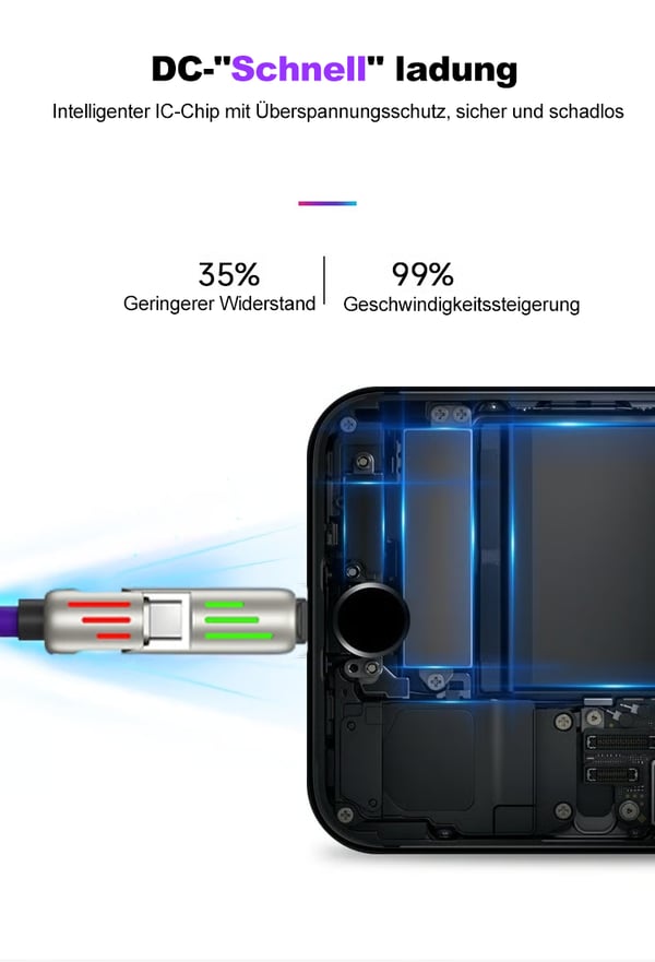 Optimieren Sie Ihre Laderoutine mit einer auffälligen Lichtanzeige, die Ihr Gerät hervorhebt. Genießen Sie die leuchtenden Farben, die jeden Ladevorgang spannend machen.
