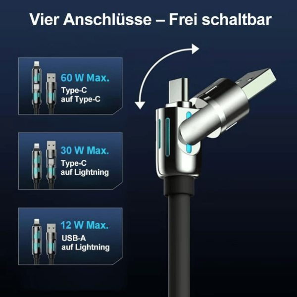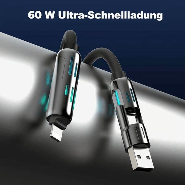 Laden Sie Ihre Geräte schneller als je zuvor mit dem 4-in-1-USB-C-Kabel 60 W.