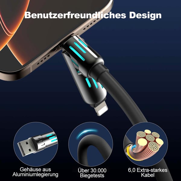 Unser flexibles Ladekabel ist universell kompatibel mit iPhone, iPad, Samsung-Smartphones und anderen Geräten und sorgt für effizientes Schnellladen. Dank seines leichten, knotenfreien Designs ist es ideal für unterwegs.